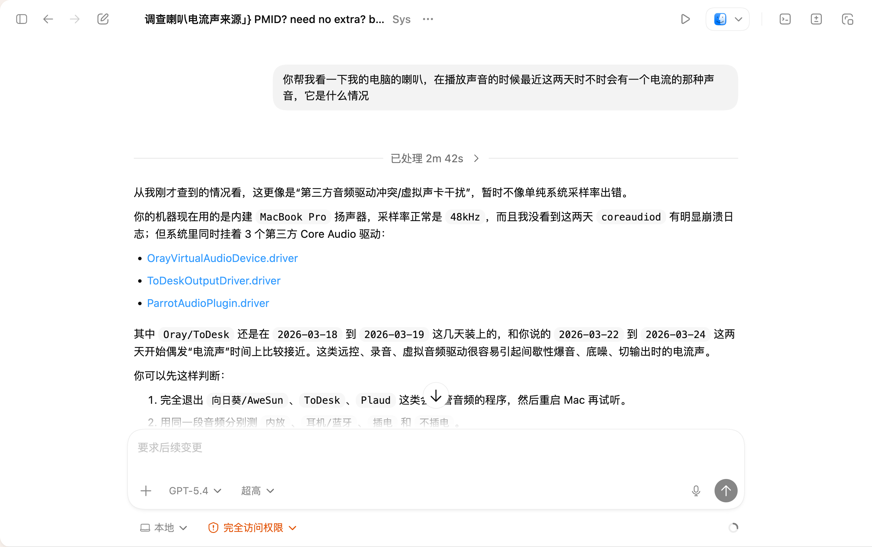 无非就是自己去搜“Mac 喇叭电流声怎么办”,然后点开一堆帖子,一个个试。运气好,撞上答案;运气不好,折腾半天还不知道问题到底出在哪。