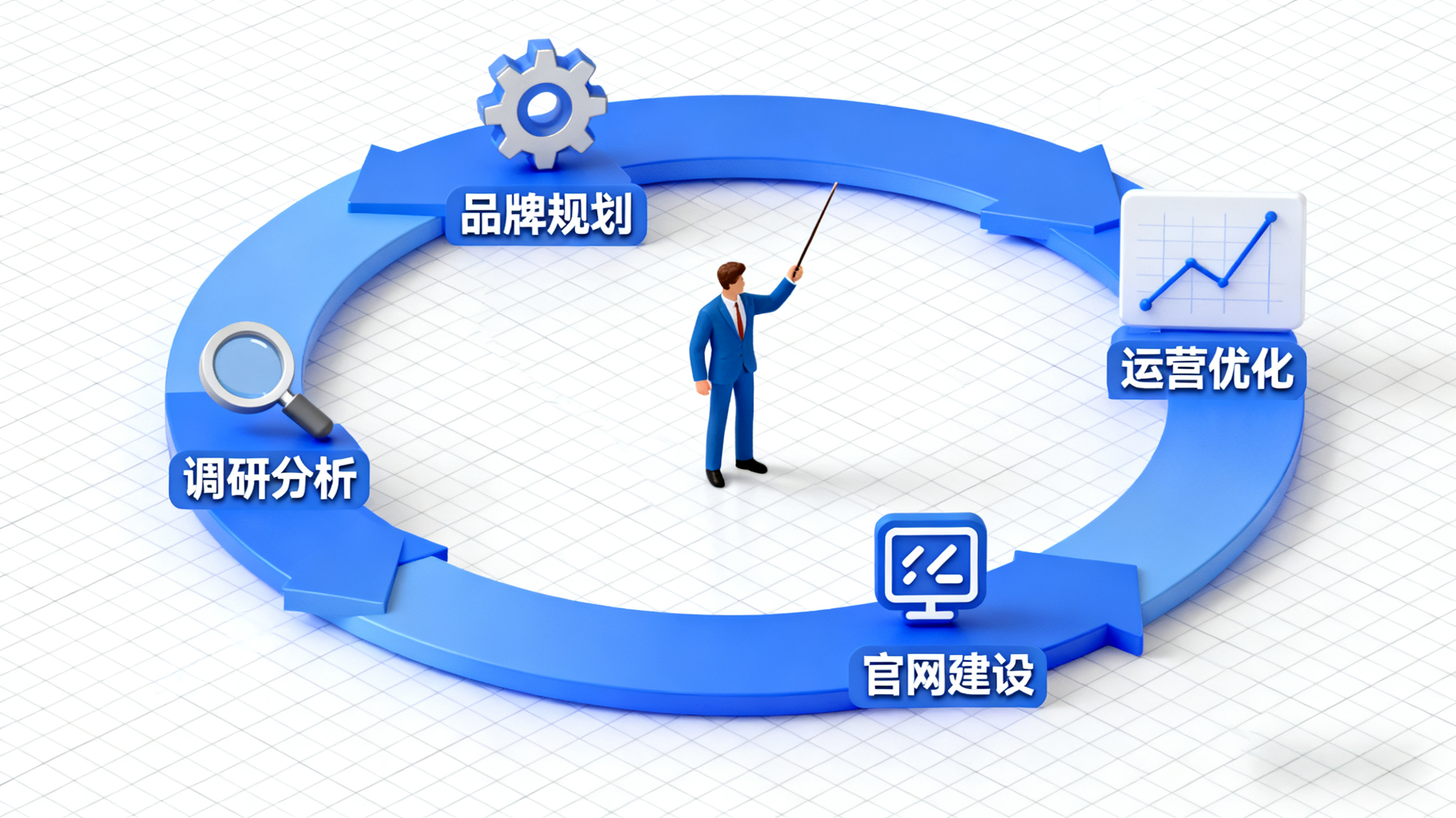 - 从品牌方向探索 → 官网建设 → 知识库与素材库搭建 → 搜索排名优化。