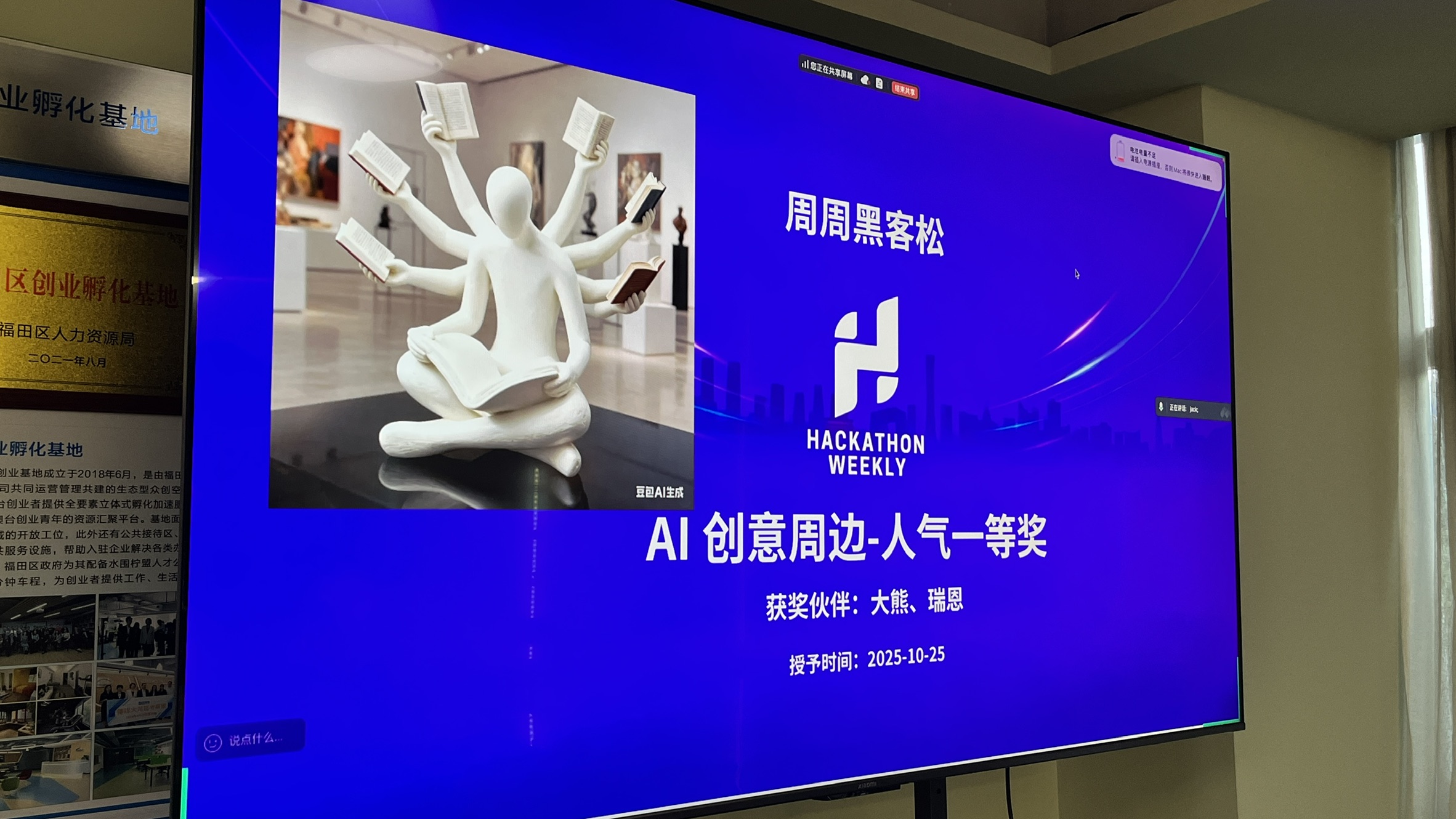 今天认识的伙伴都很有想法、也很积极,大家在这个 AI + 自媒体 + 个人创业的时代里讨论机会、交换认知、互相解答困惑,效率非常高。我也有点恍惚,毕竟行业跨度太大,很多内容我听不懂,但交流真的有意义。之后我还会多参加这样的活动,不过要带着更明确的目的:比如验证自己的想法、寻找合作伙伴、补齐认知,而不是把时间撒在每一场活动上。明天我会把今天拍的视频和图片剪出来发给大家,也算为这次高密度体验留个正式的记录。