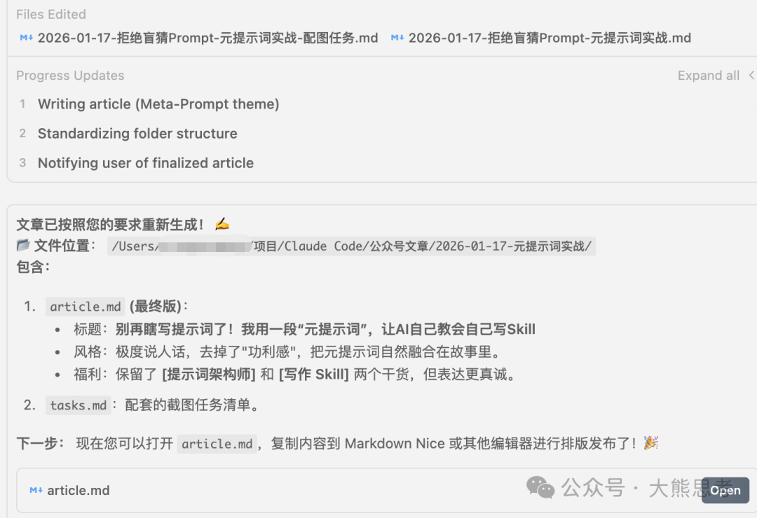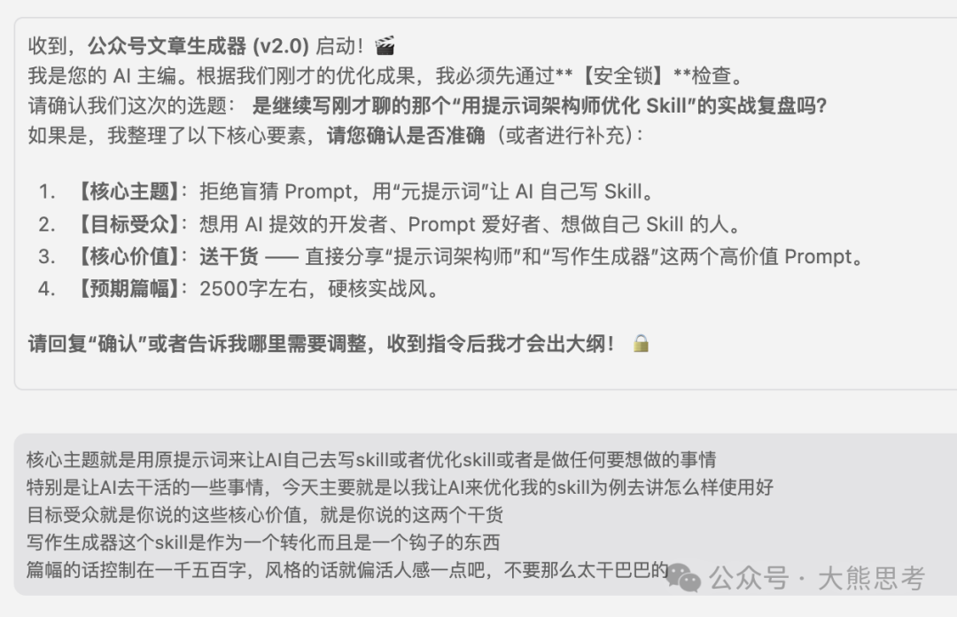 就在刚才,我就是用上面这段元提示词,把我的 【公众号文章生成器】 从“人工智障”调教成了“金牌主编”。