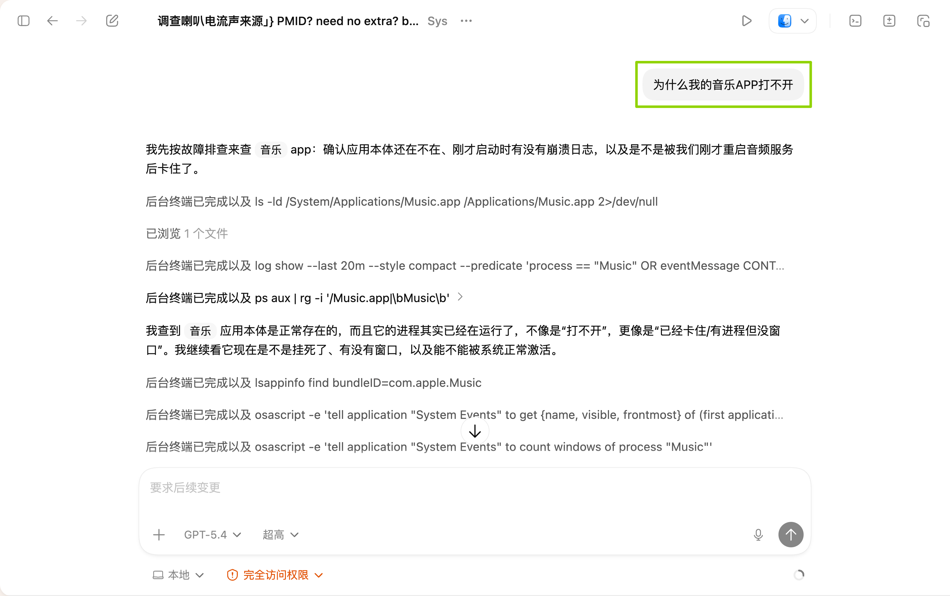 音乐 App 那个问题,最后不是停留在“我分析了一下,可能是这几个原因”,而是真的顺着检查结果继续往下,把那个卡住的状态处理掉,然后把应用重新拉回正常。